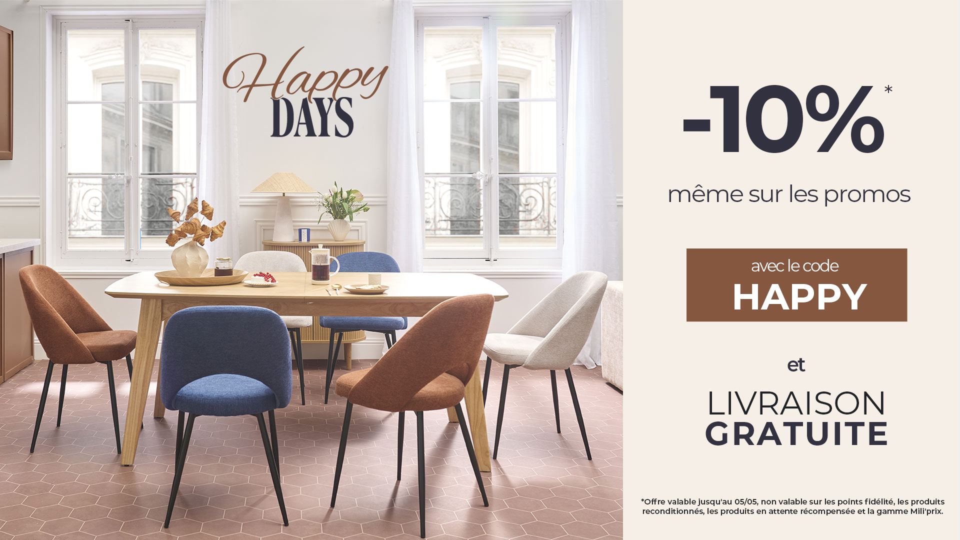 fauteuil de bureau qui, grâce à son assise confortable, rendra vos longues heures de travail aussi agréables que possibles! Miliboo.com c'est l'assurance de trouver le mobilier design qu'il vous faut pour la déco de toute la maison et toujours à prix discount. Miliboo.com c’est aussi le meuble personnalisé avec UpToYou, des promotions et des ventes flash toute l’année pour profiter de prix moins chers sur tout votre mobilier ! Entrez dans notre catalogue de plus de 2000 produits et partez à la recherche du meuble design qui conviendra à votre style et pour toutes les pièces de votre intérieur sans oublier les objets déco qui mettront des touches de design dans votre intérieur à petits prix.