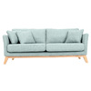 Très joli canapé La matière est superbe et couleur vert lagon identique au visuel du site. Une livraison au top avec une aide du livreur souriant (ça fait plaisir) pour porter le colis jusqu'à ma porte.