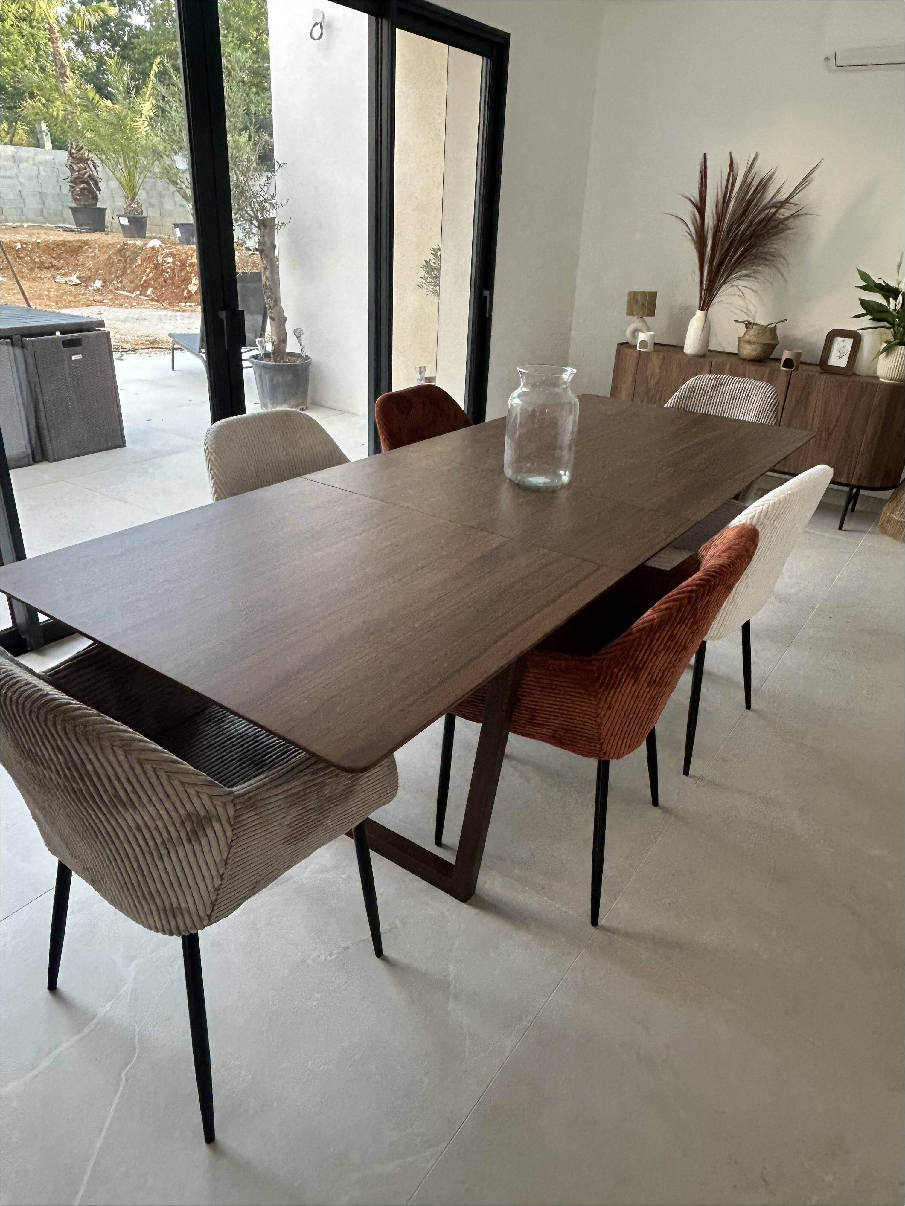 Souvent attribué aux meubles vintage, le bois foncé est ici réinterprété en version ultra moderne ! Les nuances mordorées et les nervures apparentes du placage noyer épousent à ravir les galbes de ce buffet dans l'air du temps. Il ne manque plus qu'un piètement fin en métal noir pour parfaire l'allure de ce buffet trendy !