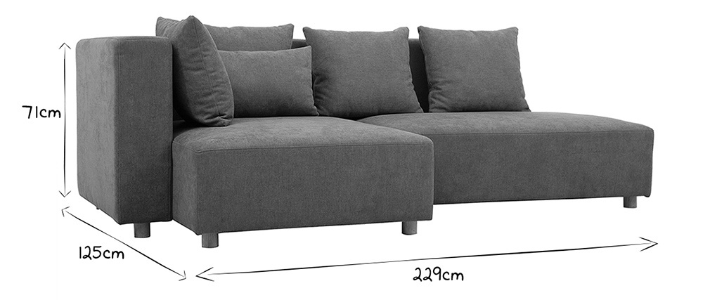 Si son assise rebondie et ses nombreux coussins sont une excuse parfaite pour prendre du temps pour soi, ses dimensions (L229 x P91 cm) vous invitent à le faire à plusieurs ! Avec sa méridienne gauche de 125 cm de long, le canapé HARLEM peut accueillir toute la famille. Chacun ajustera son propre confort d'assise grâce aux cinq coussins d'appoint et la soirée film pourra être lancée. Ambiance conviviale garantie avec ce canapé d'angle confortable !