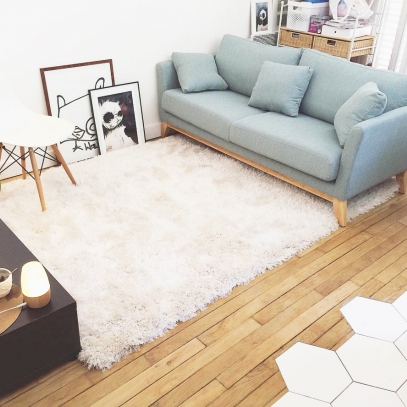 Si vous souhaitez aménager un véritable espace salon dans une pièce multifonction, la petite astuce simple et déco c'est de disposer votre canapé sur un beau tapis de salon. Le tapis a l'avantage d'apporter une touche déco supplémentaire tout en séparant visuellement l'espace. Vous aurez ainsi un vrai coin salon séparé dans votre pièce de vie sans monter de cloison !