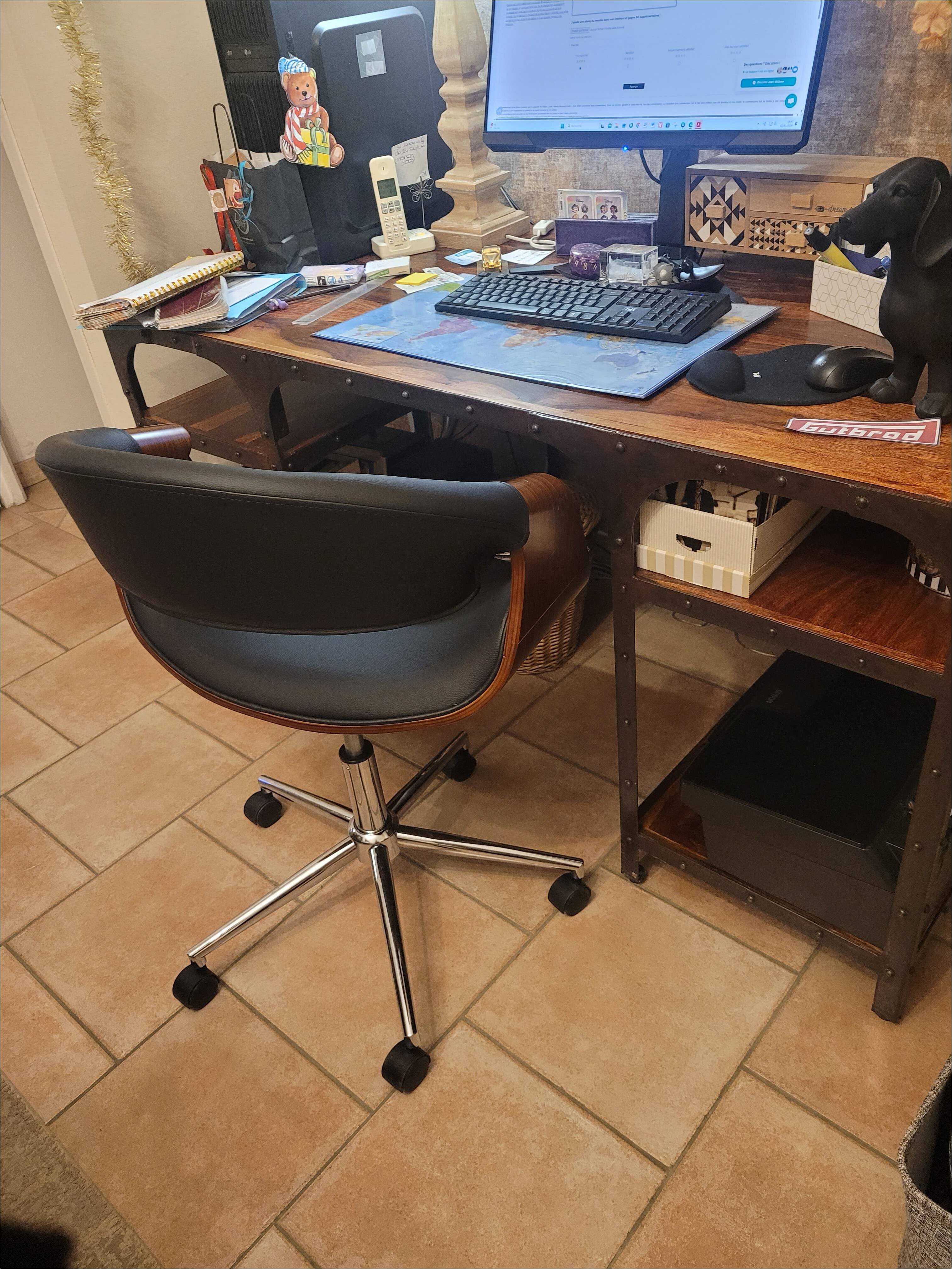 Le fauteuil de bureau ARAMIS mêle à la perfection le polyuréthane et le bois pour de beaux contrastes qui lui donnent un look vintage assumé très tendance. Associé à notre bureau NEW MAX, il apportera une touche contemporaine à votre bureau.