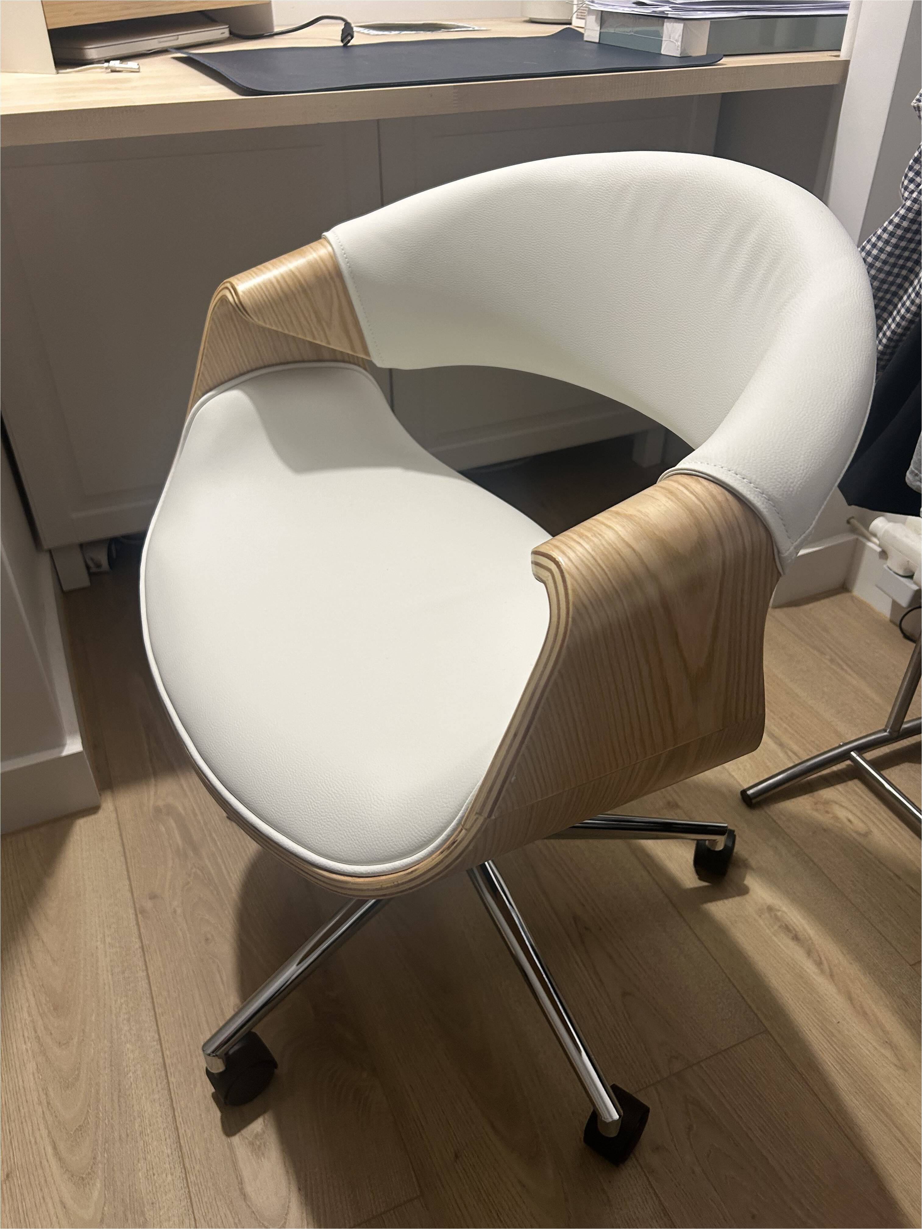 Cette chaise de bureau blanche est livrée prête à monter. Montage simple.