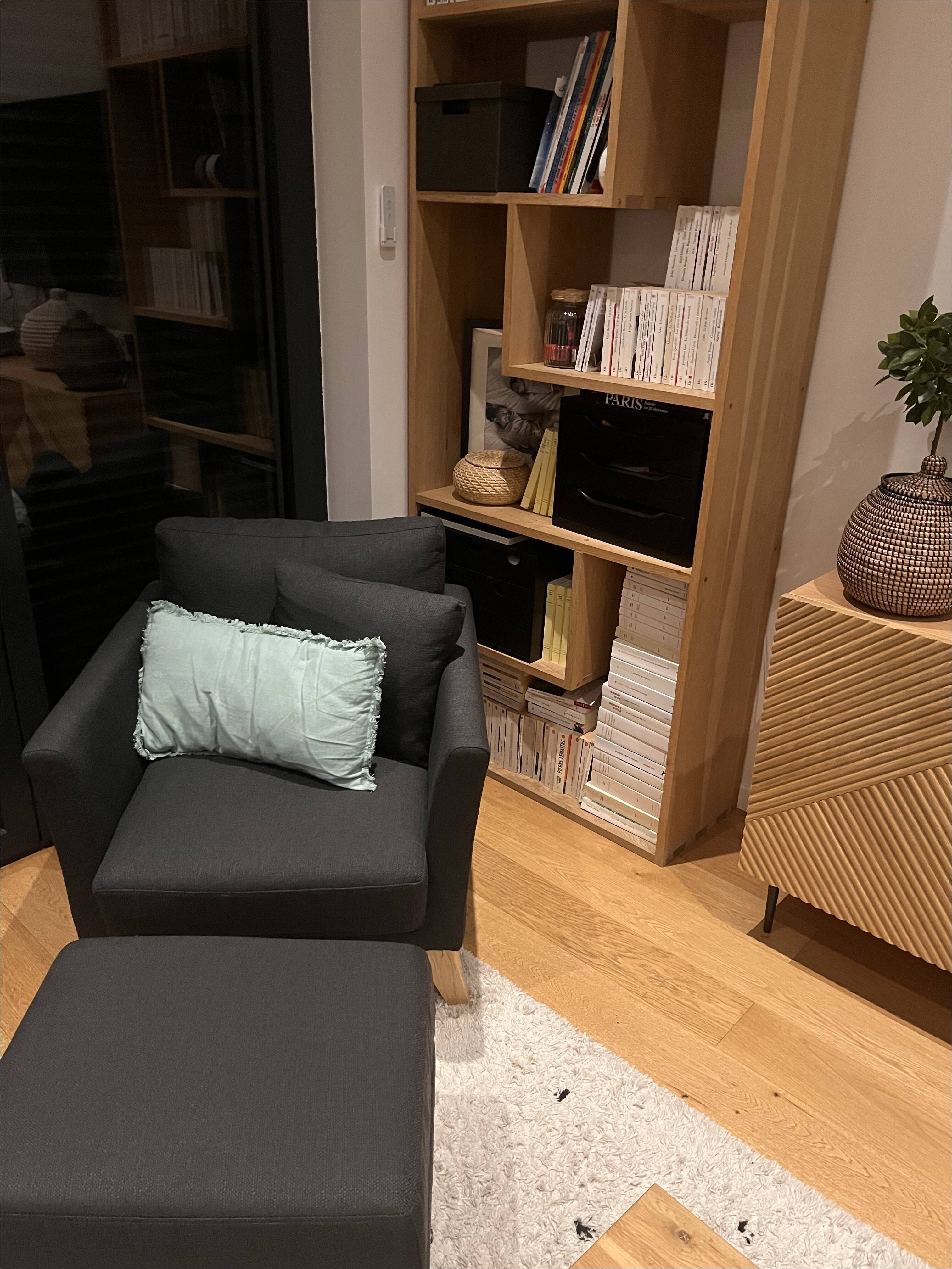 Pour s'aménager un espace fonctionnel dédié à la détente, placez une table d'appoint, un tapis duveteux et un luminaire design aux côtés du fauteuil OSLO.