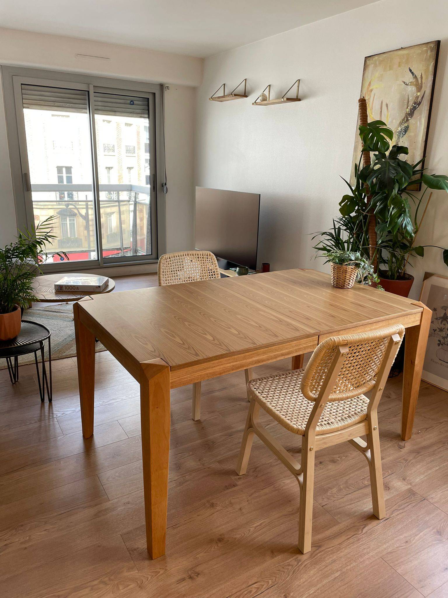 Au style épuré et d'inspiration scandinave, cette table de salle à manger en bois trouvera autant sa place dans un grand séjour d'influence nordique et nature que dans un espace repas un brin rétro.