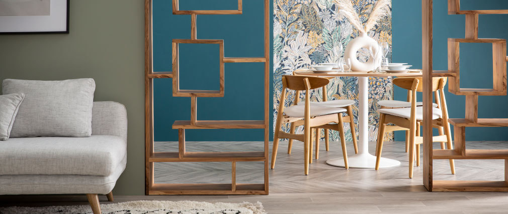 Avec un diamètre de 110 cm, vous pouvez accueillir jusqu'à 6 convives. Son plateau rond est composé de panneaux de fibres de bois finition chêne et offre un bel espace, tant pour le déjeuner que pour travailler en prenant son thé. Le bois clair associé au piètement en métal blanc est une association dont on ne fait plus l'éloge. La table à manger KALI apportera chaleur et luminosité à votre espace repas. Elle sera idéale dans une salle à manger aux côtés d'un buffet de style scandinave ou accompagnée de chaises contemporaines.