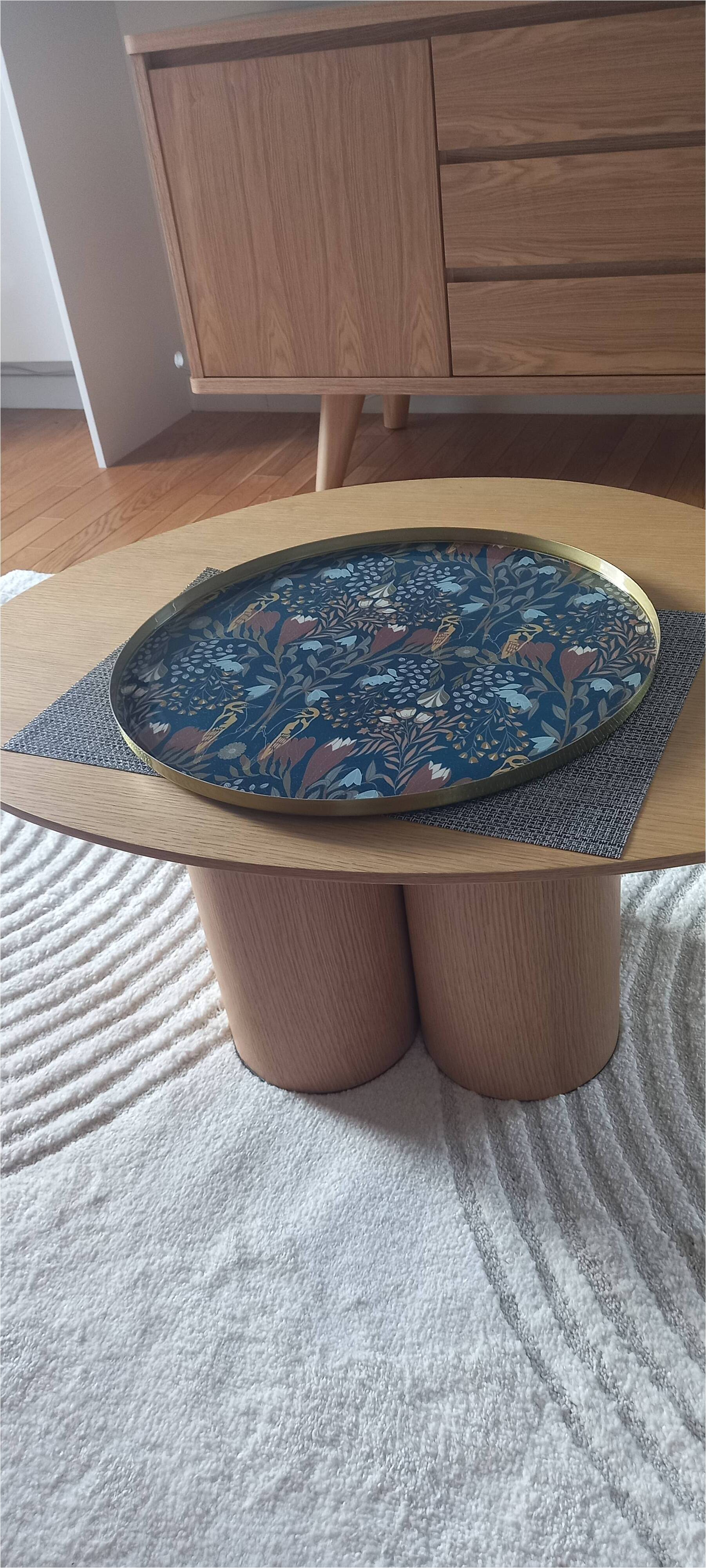 Sous des lignes fluides : fonctionnalité et robustesse vont de pair ! Élément central dans un séjour, formée par un piètement base trois cylindres et un large plateau ovale (L79 x L61 x E1.8 cm) en panneaux de fibres de bois placage chêne teinté, cette table basse noire rassemblera famille et amis le temps d'un apéritif festif, d'un goûter gourmand ou encore d'un plateau télé pour ne rien manquer de votre émission préférée !