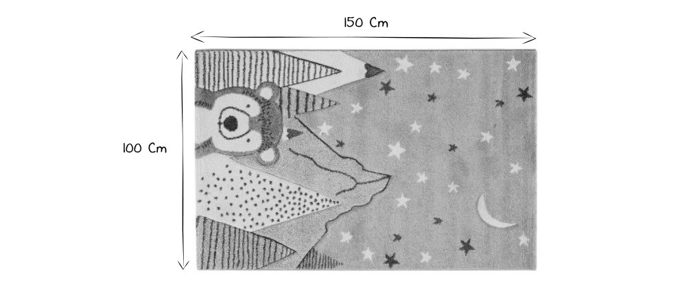 Grâce à ses petites dimensions (L100 x L150 cm), ce tapis peut trouver sa place dans une petite chambre ou servir à délimiter l'espace jeu des enfants dans une pièce partagée.